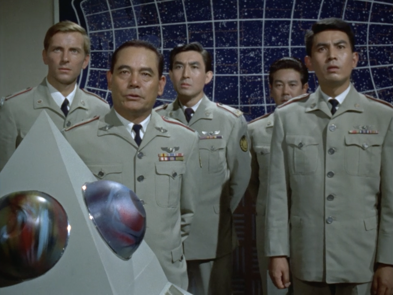 The TDF upper brass make several appearances and include recurring guest stars Kenji Sahara (Staff Officer Takenaka) and Akihiko Hirata, Toho regulars who were seasoned veterans of the Ultra series.
