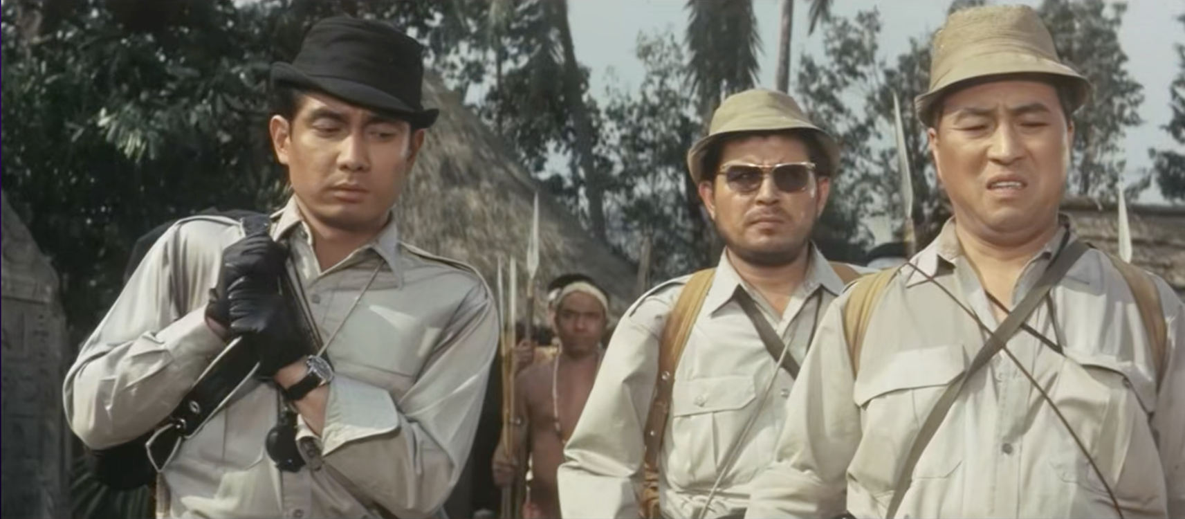 This is a tedious film, lasting 22 minutes longer than Gamera but with far less to fill the time. It’s low on Gamera and high on filler about four crooks trying to retrieve an opal from a cave in New Guinea that one of them hid there during the war after he stole it from the natives. The opal turns out to be the egg of the enemy monster, Barugon, although it won’t hatch until 45 minutes into the movie.