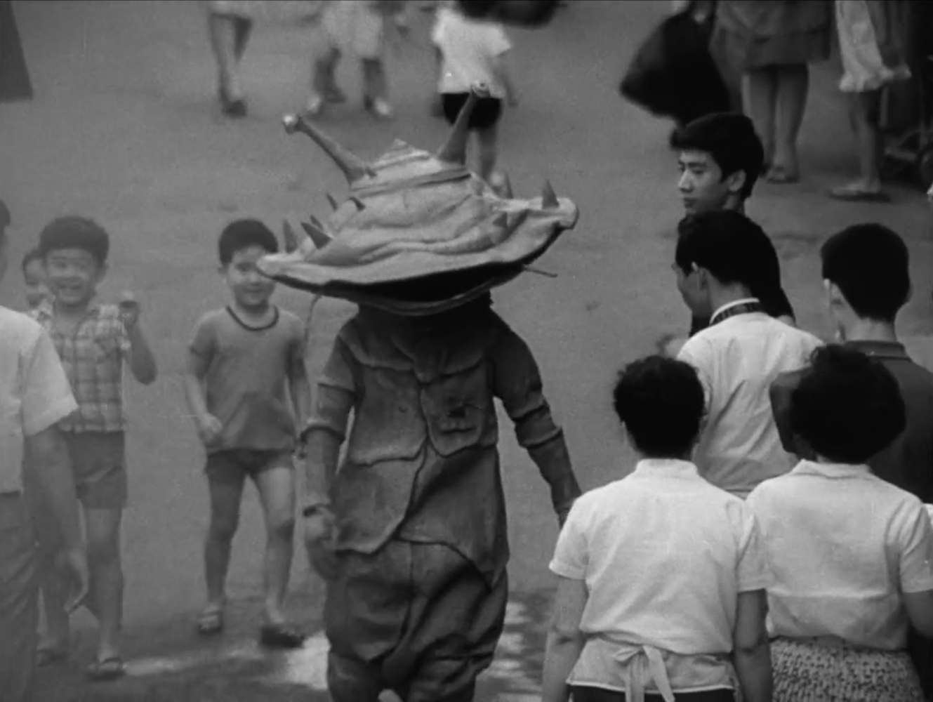 Big credit goes to Kanegon’s performers: suit actor Haruyoshi Nakamura and voice actor Mitsuko Aso, who also voices Kaneo as a human child. Nakamura’s performance is comedy perfection, gifting Kanegon with a mixture of bumbling silliness and sadness. Nakamura had already brought his gift for humorous monster acting to Ultra Q as M1 in “The Underground Super Express Goes West,” and would later play the headlining cute monster in the Tsuburaya Pro children’s sitcom Kaiju Booska.