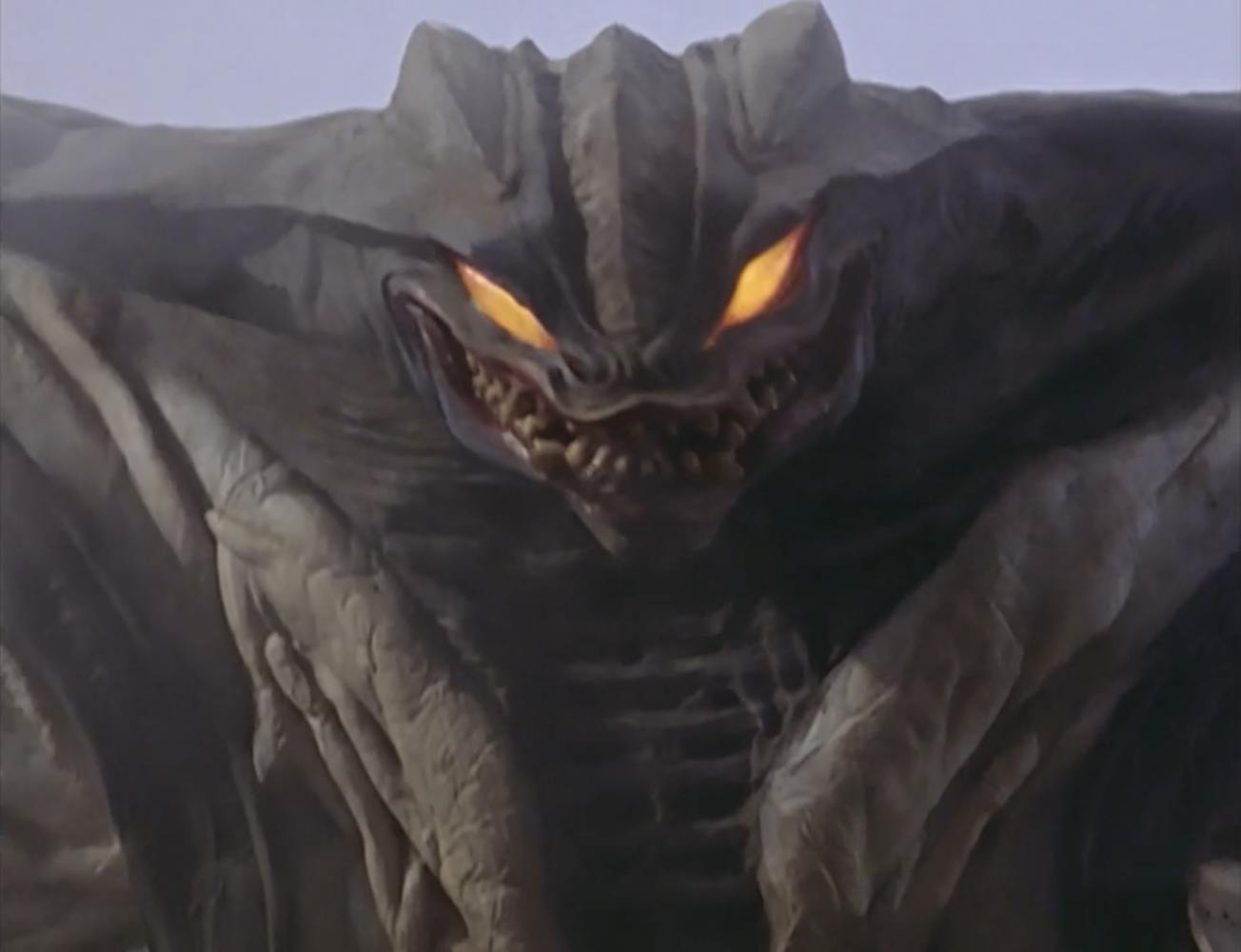 Based on data from the remains of Dr. Mizuno’s probe, Horii theorizes the Clitters have come down from their home high in the Earth’s atmosphere because of massive amounts of radio waves emanating from developing human technology. The Clitters have also evolved a new form — the giant monster Gazort. When the Clitters’ cocoon emerges from the cloud and crashes into the ground, it hatches Gazort, who goes looking for food. Which means smashing stuff.