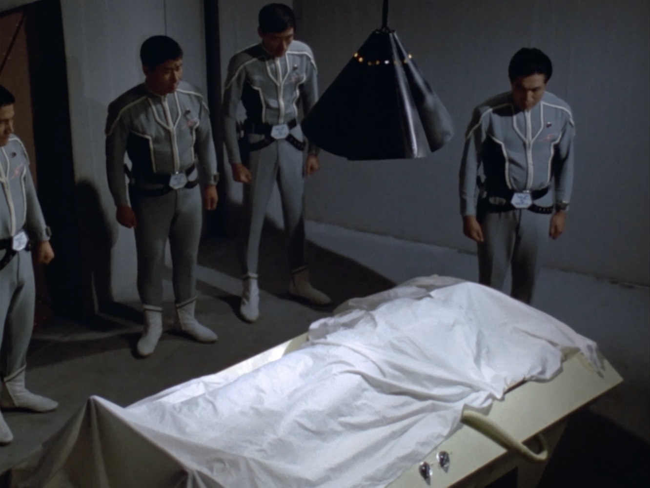 Captain Kiriyama sends the Ultra Guard to investigate a series of unexplained deaths, mostly of young vacationers, around Mount Iwami. While Dan and Soga are scouting the area, the alien raygun used on the victims zaps Dan, apparently killing him. We know Dan isn’t really dead — he’s the lead of the show, after all — but this opening immediately moves the episode into new territory. The series protagonist is out of the action, and the Ultra Guard has to figure out what happened without him until the finale, when we know that Dan turns into Ultraseven and squares off against the alien menace.