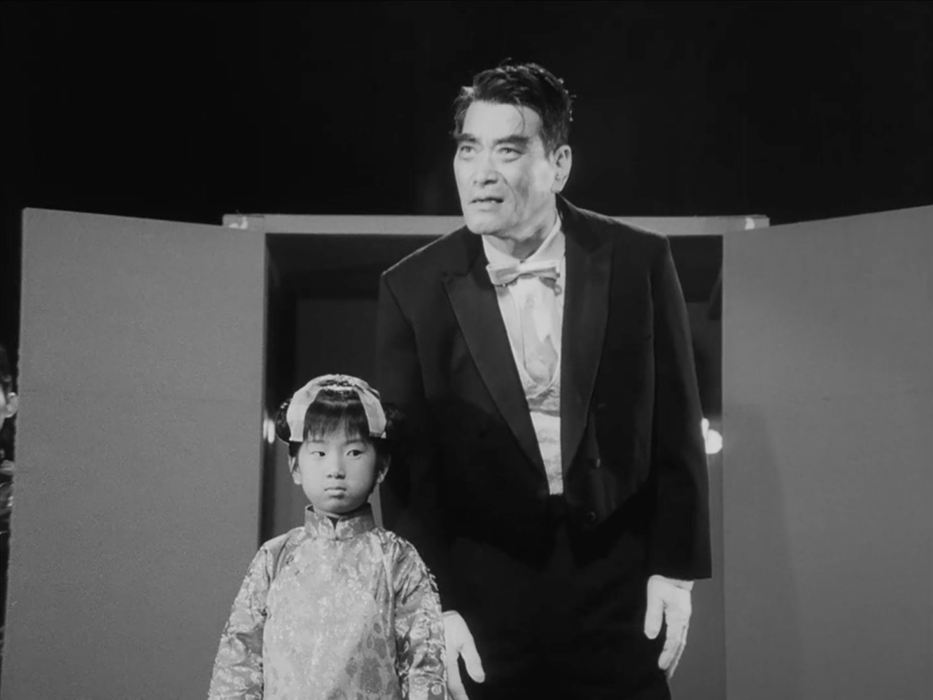 The child of the title is Lily, the young daughter of popular stage magician Akasuna (played by Yoshio Kosugi, who appeared in Seven Samurai and numerous Ishiro Honda SF movies). The main trio of series leads, along with Professor Ichinotani, watch Akasuna perform a trick where a ghostly figure of Lily materializes above a box where the actual Lily is sitting. Ichinotani, rather than suggest this was a conventional stage illusion, ponders the possibility that it’s a manifestation of human bioelectricity. Essentially, the “soul” of Lily, some other human essence, separated from her physical body through hypnosis.