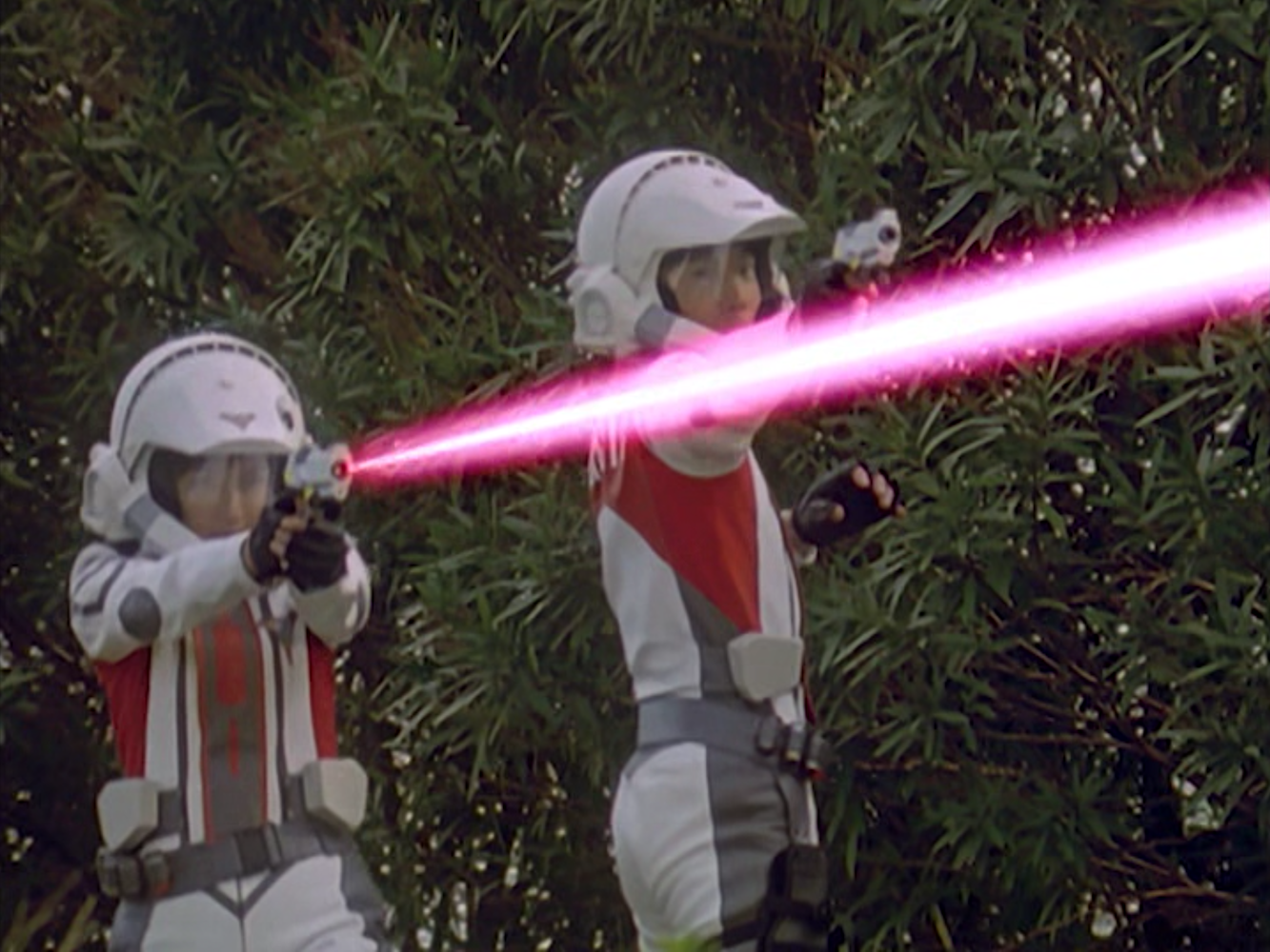 One fine day in Tokyo, the Ultraman Tiga creative team was lounging around, bandying about ideas for a show that didn’t have a strong overall plan from the beginning. Writer Kazuyoshi Nakazaki said, “Hey, you know what’s a great movie? The Predator.” Writer-director Hirochika Muraishi, answered, “Yeah, it’s a bit like that short story ‘The Most Dangerous Game.’ ” And right there and then the two sat down at a computer and hashed out the script for “The Unleashed Target.”