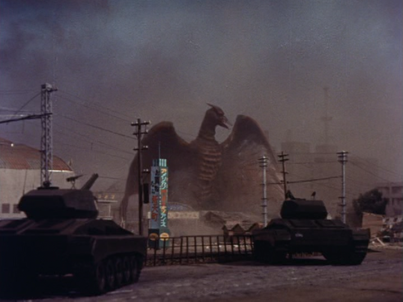 The Rodans then land in Kyushu’s largest city, Fukuoka, for the film’s centerpiece: an apocalyptic urban destruction that’s one of the peaks of kaiju cinema. JSDF tanks and missiles launch a blistering assault on the Rodans, but firepower is no match for the maelstrom from the monsters’ wings that levels the middle of the city.