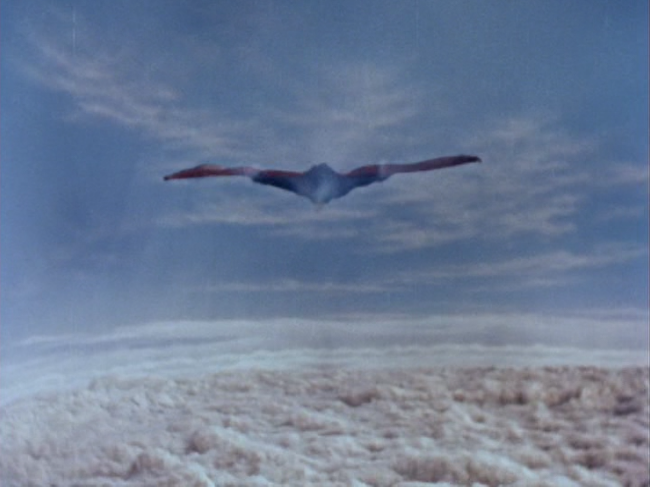 After an earthquake causes part of Mt. Aso to collapse, Shigeru (Kenji Sahara, future Ultra Q lead), a miner who vanished during a Meganuron attack, is found wandering the crater in a catatonic state. While doctors try to get Shigeru to remember what he’s seen, mysterious flying objects moving at supersonic speeds start harassing the skies over Japan, China, and the Philippines. They even kill a couple picnicking on Mt. Aso with a sonic boom.