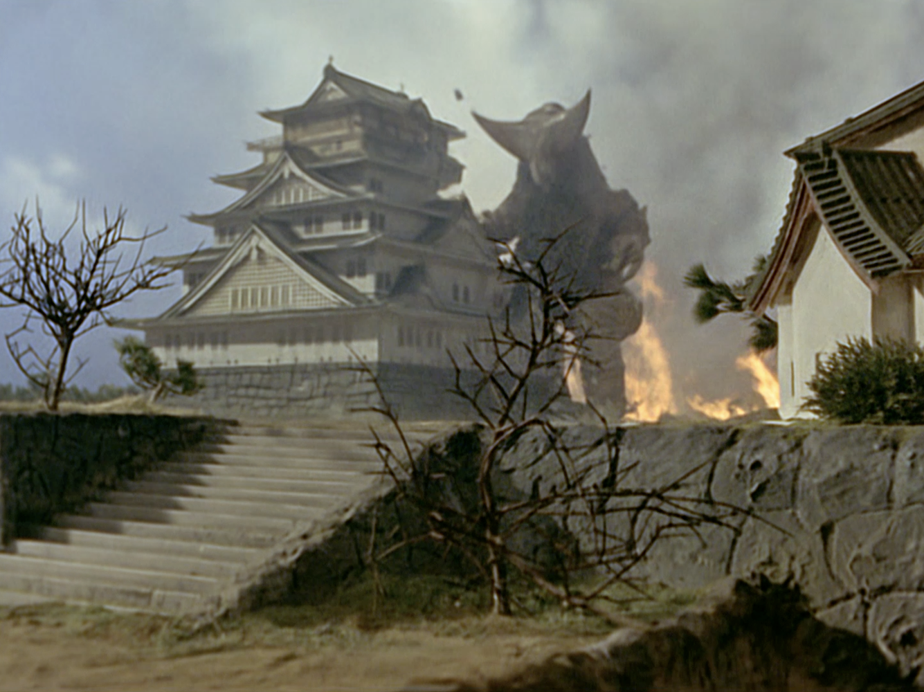 The effects team under director Koichi Takano outdo themselves. The two fights between Gomora and Ultraman are among the best in the show, filled with fast moves and big stunt work. Gomora’s rampage in Osaka is packed with all the mayhem, missiles, and explosions you want from a kaiju movie. Gomora threatens to destroy Osaka Castle — famously pounded to rubble during the Godzilla–Anguirus fight in Godzilla Raids Again — and the Science Patrol and the JSDF put up a valiant attack to protect the national landmark. It’s superlative work from the Tsuburaya team, and it gives the SSSP trio of Arashi, Ide, and Hayata plenty to do as they work together on the ground. Arashi is truly in his element here. (The episode includes the most Arashi line of all time: “If we have all these weapons, we’re sure to win!” Once again, he’s wrong.)