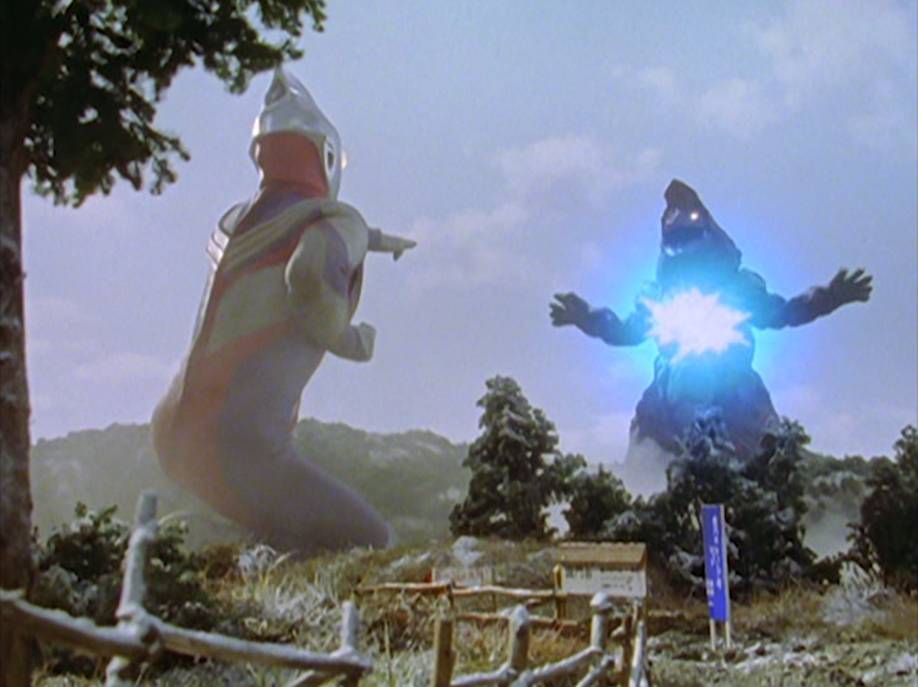 The battle goes on long enough for Tiga to switch up tactics and strategies as Golza resists most of his attacks. The fight has lots of close-quarters punching, kicking, and combos that give a more tactile feel to the action. At one point, the camera captures the thrill of Golza and Tiga in combat in a beautiful long dolly shot. I love these kinds of shots in the visual effects scenes because they add a dimension of scope and motion that sometimes gets lost in VFX stage environments.