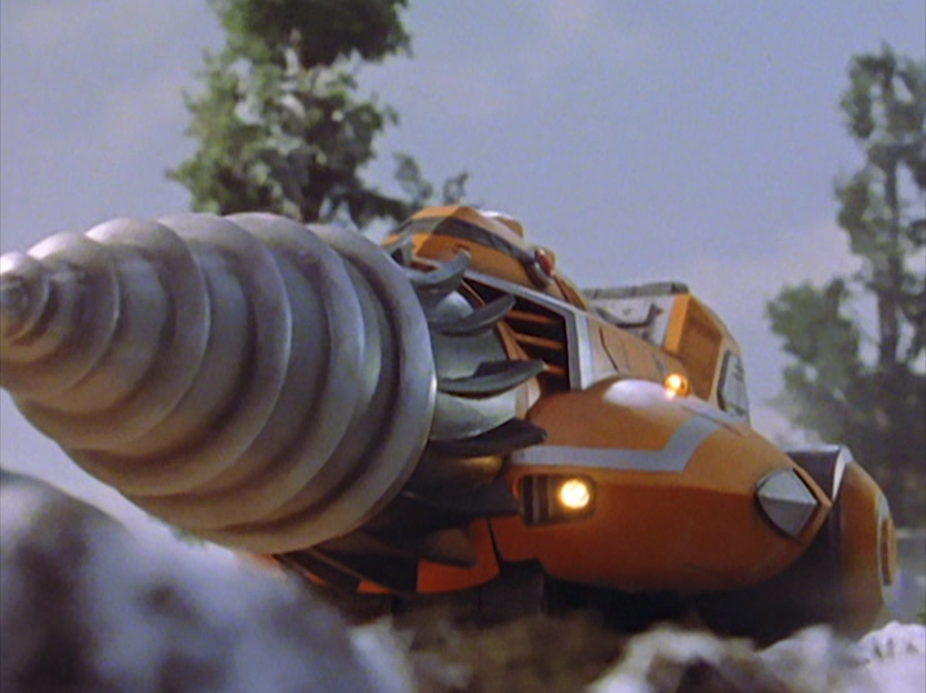Golza waits to make its appearance while TPC and GUTS attempt to solve the riddle of the abnormal magma flow from Mt. Kirimon. Daigo and Kinjo take GUTS’s underground drill tank, Peepar, into the roots of the mountain to freeze the magma flow. They manage the job with visuals that look like they’re inside Mount Doom, searching for a place to toss in the One Ring. Their actions arouse Fire Golza, who’s gathering energy from the magma. Daigo and Shinjoh become trapped underground while GUTS tries to force Golza to the surface so they can attack it with all their weaponry.