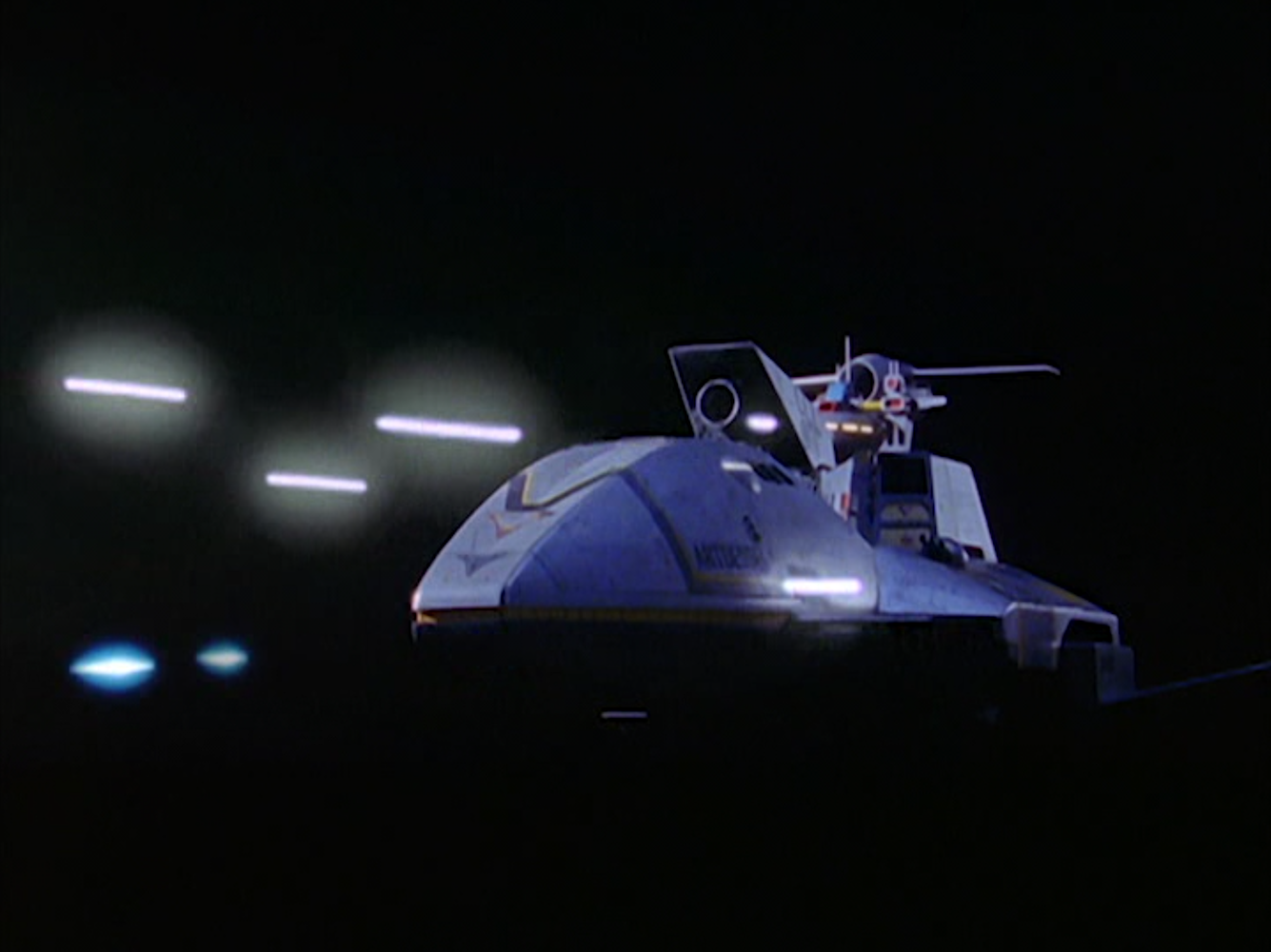 Despite the grandiose title, GUTS doesn’t travel that far into space. They only reach a “mechanical island,” a large alien fortress, that’s floating over Earth. But the two-parter has an epic feel that packed with space opera action: laser gun fights, a robot army, spaceship battles. It’s never a dull time, although the script is a bit undercooked with its themes, and the space action requires an excess of flat digital effects.