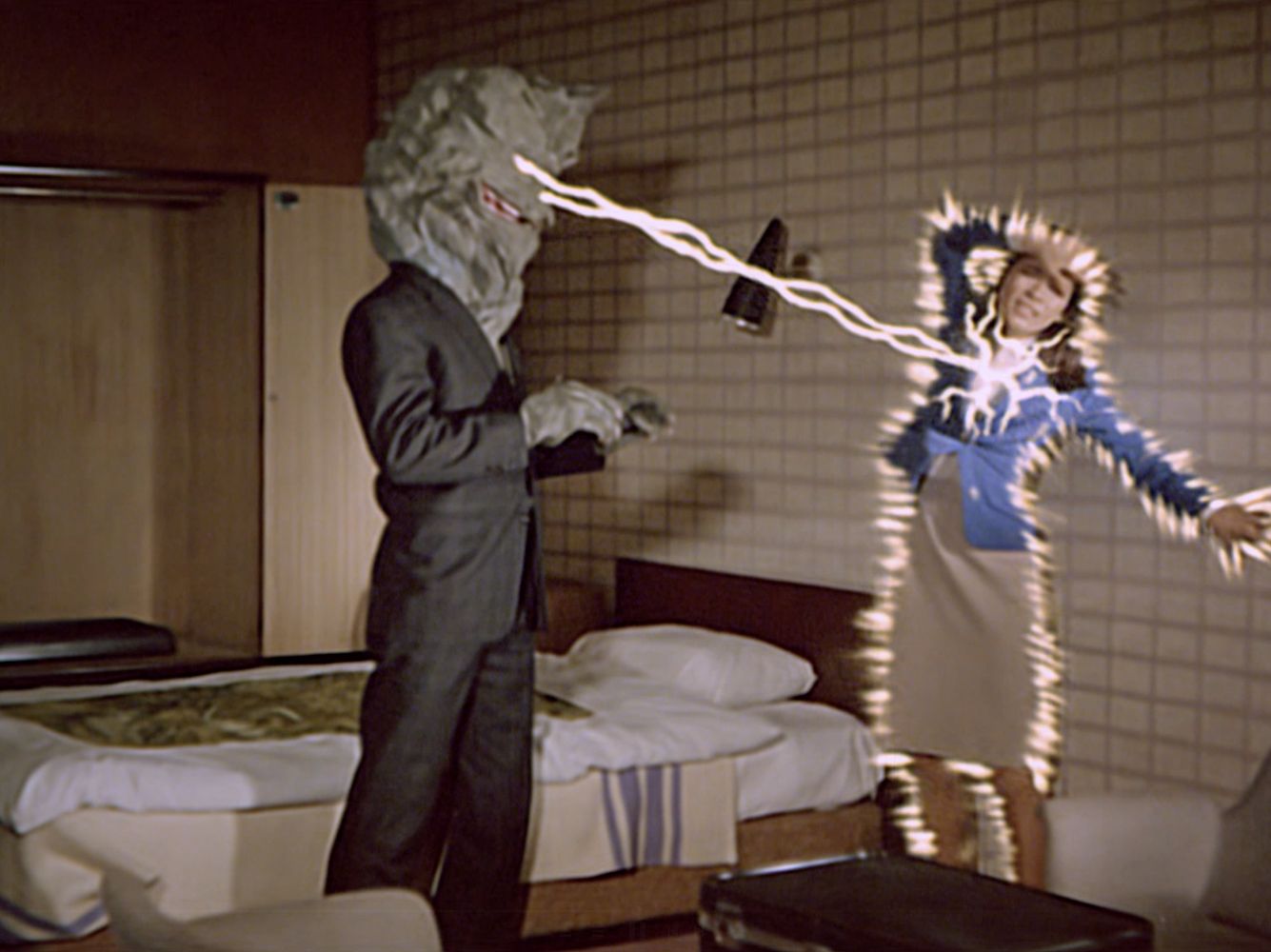 This action spectacle is also an odd place for the episode to end. The story begins as a simmering mystery about an infiltrator in a human disguise entering the ranks of the SSSP. The tone is similar to several Ultraseven episodes (“Project Blue” and “Search for Tomorrow”) that emphasize suspense.