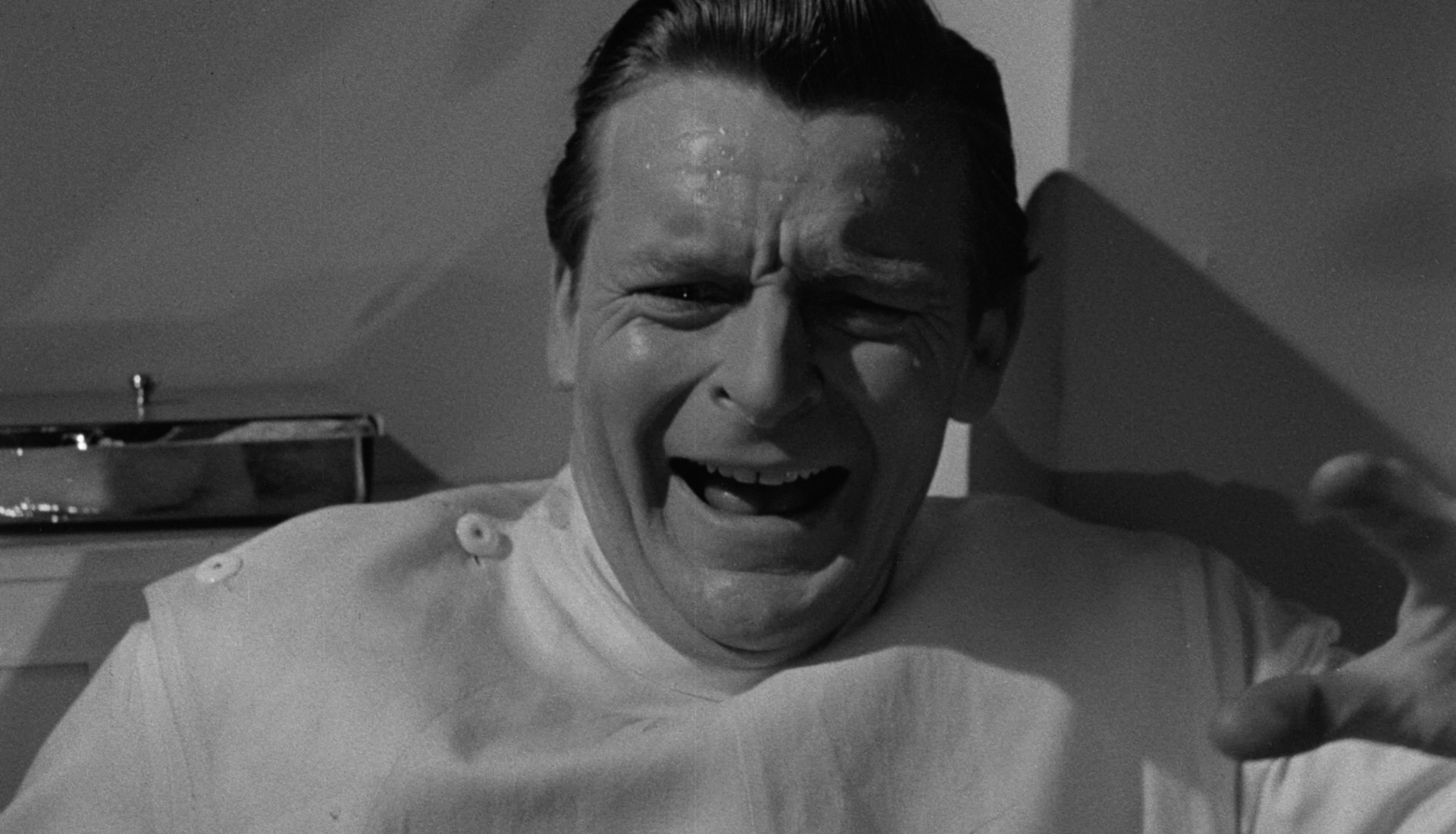 Forgetting for the moment Norman’s rancid reputation with the crew and actors, he does ably handle the suspense and technical aspects of the movie. The early attacks when the creature is hidden from the audience are eerie and shocking, with striking lighting and a creepy “static” sound effect to indicate the monster’s proximity. One of the best sequences has a doctor and a nurse fooling around in an x-ray room — a moment that might have come from a slasher film except it’s so resolutely British — when the killer mud comes to snack on radioactive material in a vault. The scene is not only intensely staged, it has grisly make-up effects. This is the scene where X the Unknown comes the closest to reaching the terror levels of The Quatermass Xperiment.