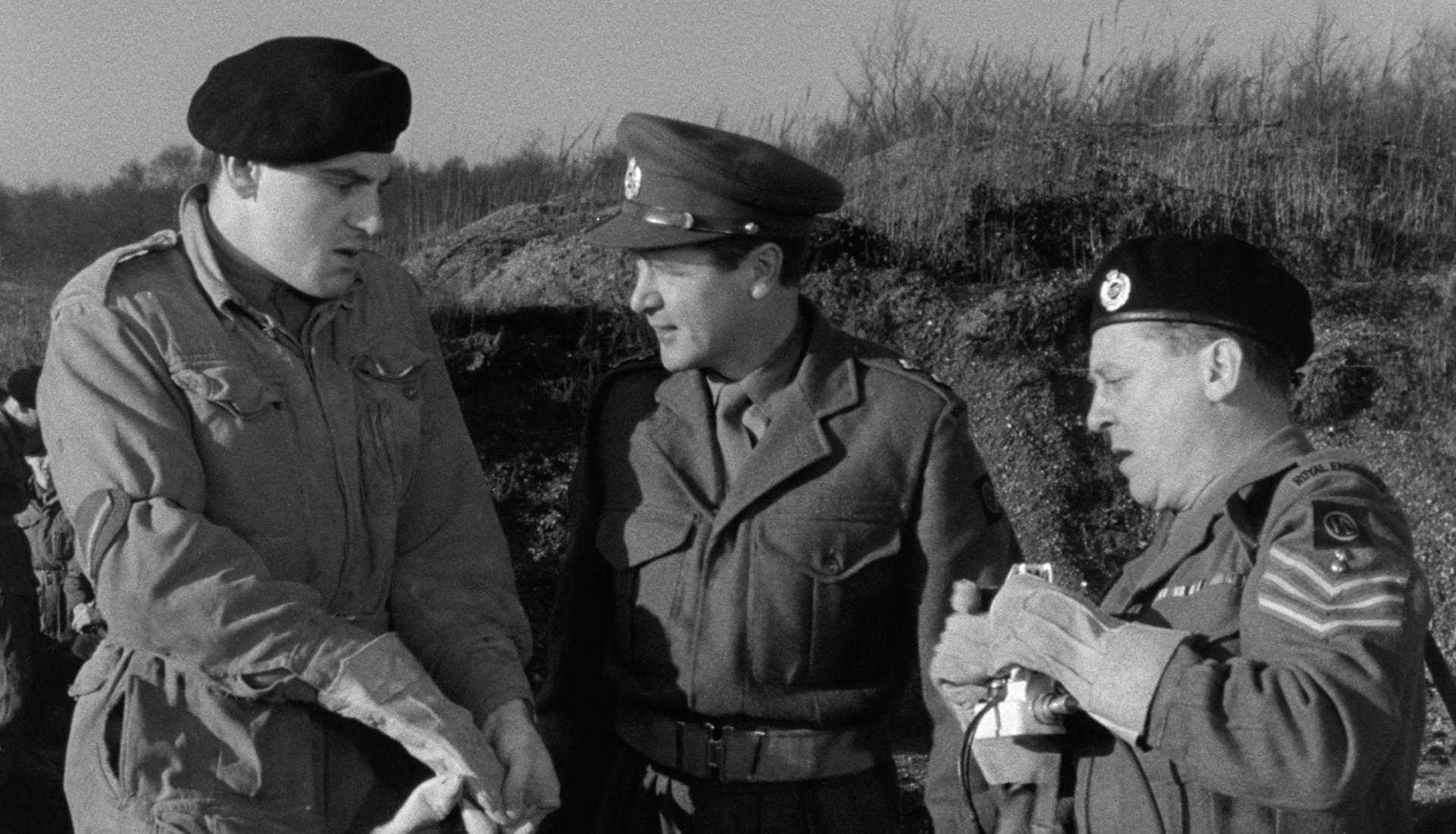 Adding some welcome humor are actors Anthony Newley and Ian MacNaughton, who form a comic duo as soldiers Spider and Haggis. They aren’t annoying comic relief, they’re just funny, doing a riff on the “Pat and Mike” stock characters from British musical hall. They don’t make it past the mid-point, and sadly there’s nothing to replace them. Both went on to successful careers in different parts of the entertainment world: Haggis as the director/producer for Monty Python’s Flying Circus and Newley as a pop singer and songwriter most famous for writing the songs for Willy Wonka and the Chocolate Factory.