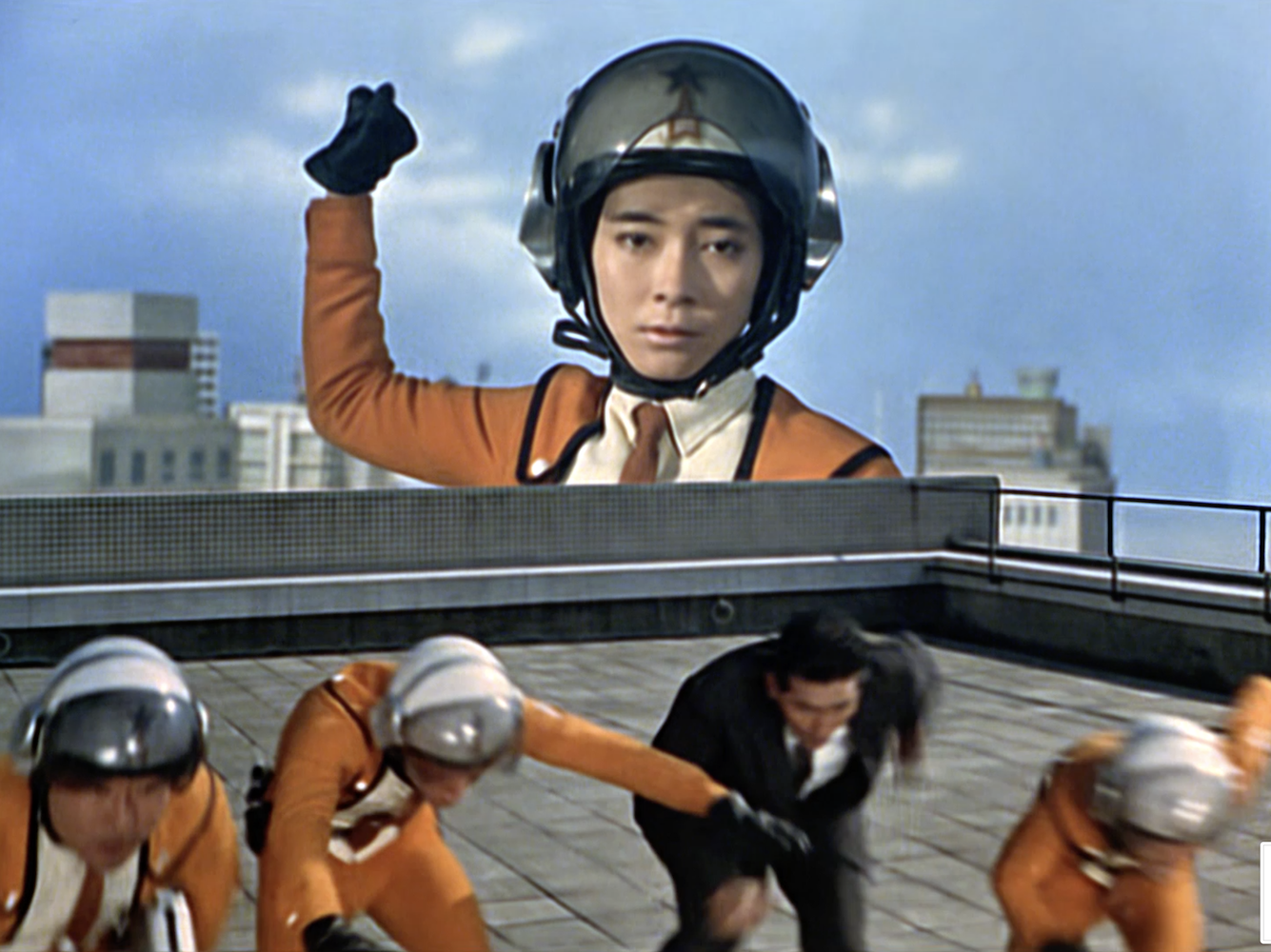 Early in the episode, after demonstrating his power by floating a cargo vessel and causing it to explode, Mefilas kidnaps Hayata, Fuji, and Fuji’s younger brother Satoru (Katsuaki Kawada). Mefilas knows Hayata is Ultraman and paralyzes him before he can transform. He turns Fuji into an Ultraman-sized giant and sends her into the city to distract the rest of the Science Patrol.