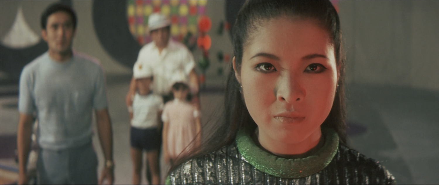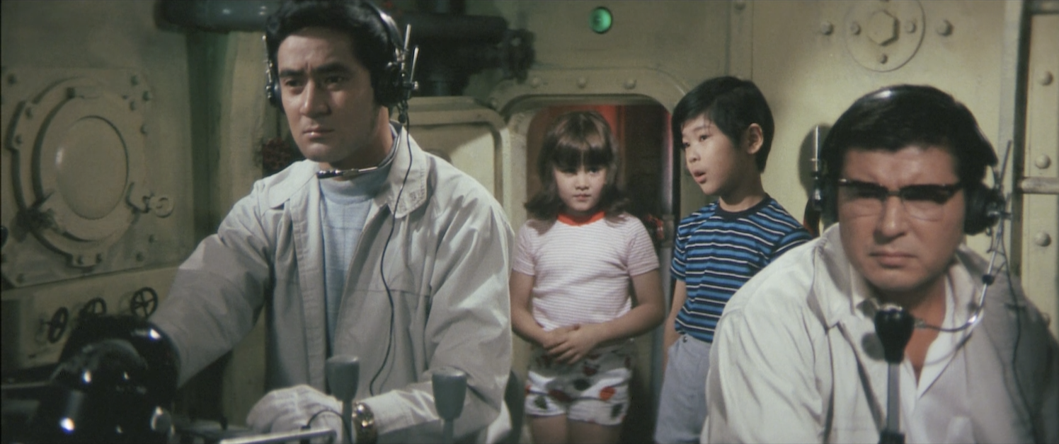 What the film tries to pass off as “thrills” are embarrassing. The UN makes a single half-hearted attack on Zigra’s starship, and then the whole world collectively gives up. A large chunk of the film, before Gamera and Zigra even have their first encounter, has Zigra’s hapless agent (Eiko Yanami) dashing around an empty Seaworld trying to catch two kids who keep outwitting her with subpar Scooby-Doo antics. It’s the low point of the Gamera series, no doubt. The draggy scene with a trapped bathyscaphe that eats up most of the second half is hardly an improvement, and it’s a perfect example of how useless Kenichi and Helen are. Of course, their fathers are useless in this scene as well. Uselessness all around!