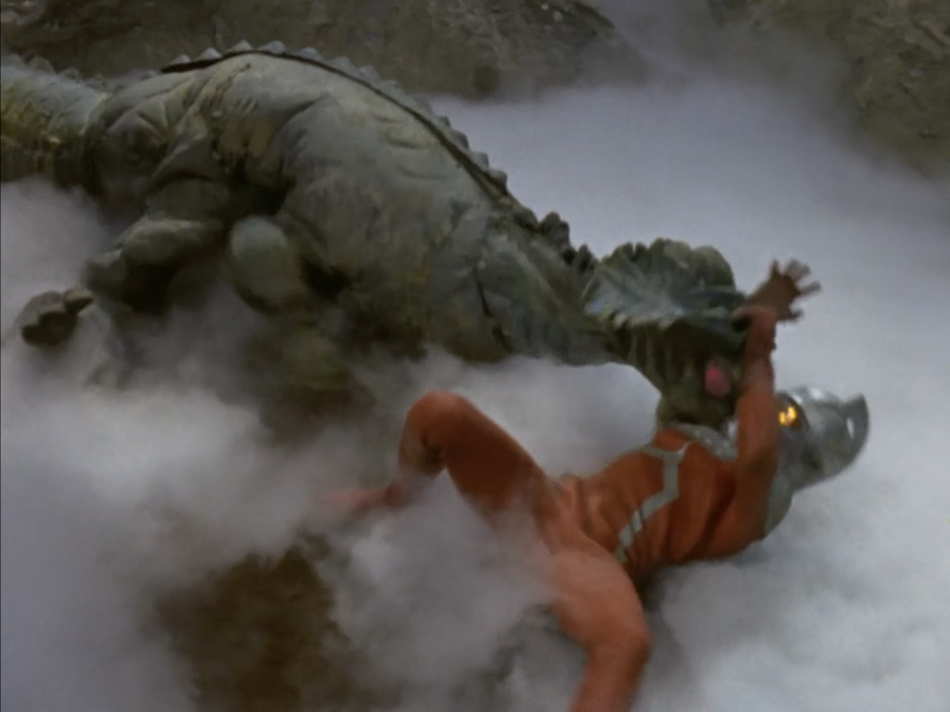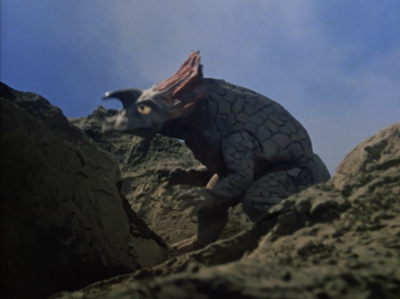 “The Strolling Planet” is one of the most straightforward episodes of Ultraseven: a ticking-clock thriller with a giant monster and minimal alien presence. Dan, Furuhashi, and Amagi find the controls for the asteroid, but learn nothing about what race created it or why. The kaiju, Rigger, is just roaming the asteroid’s surface to add more tension and set up an Ultra fight for the climax.