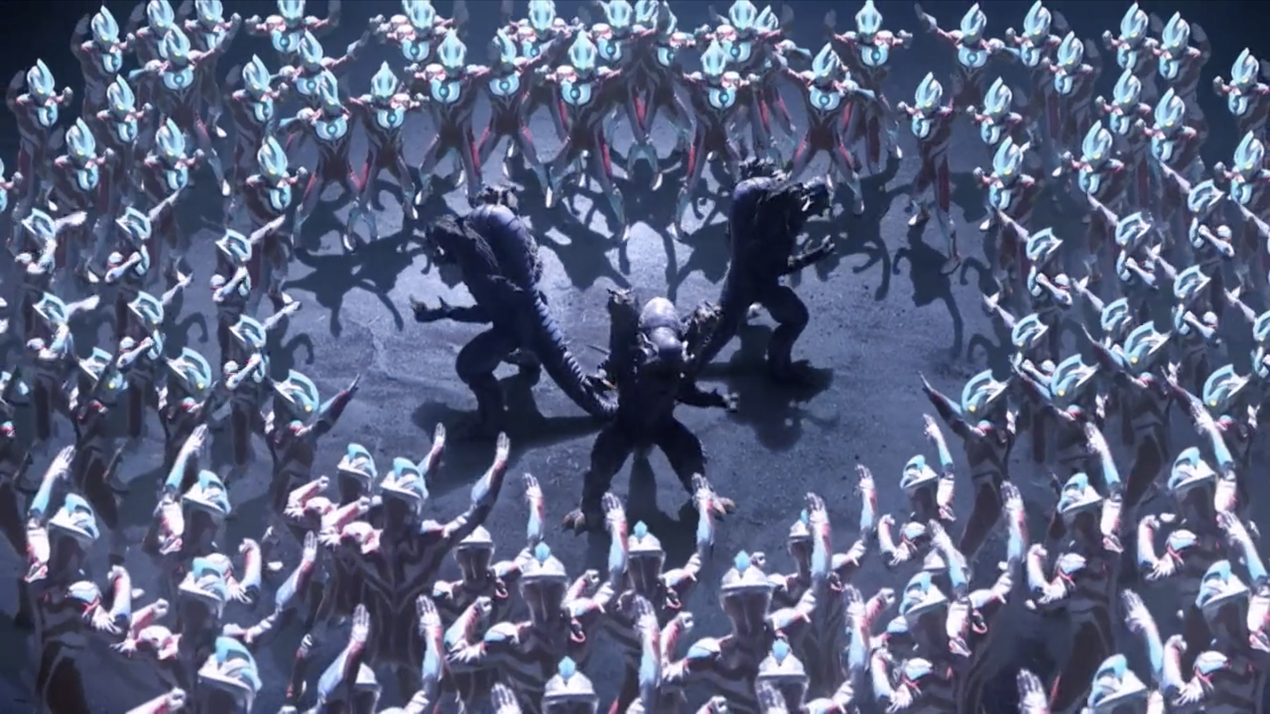 The three-headed Galberos is a fantastic-looking beast that first appeared in Ultraman Nexus, where it was one of the kaiju highlights. Its dark, wicked design doesn’t gel with most of the other kaiju in Ultraman Ginga, but for a video-game-styled lark, it works fine. Good costume re-use choice.