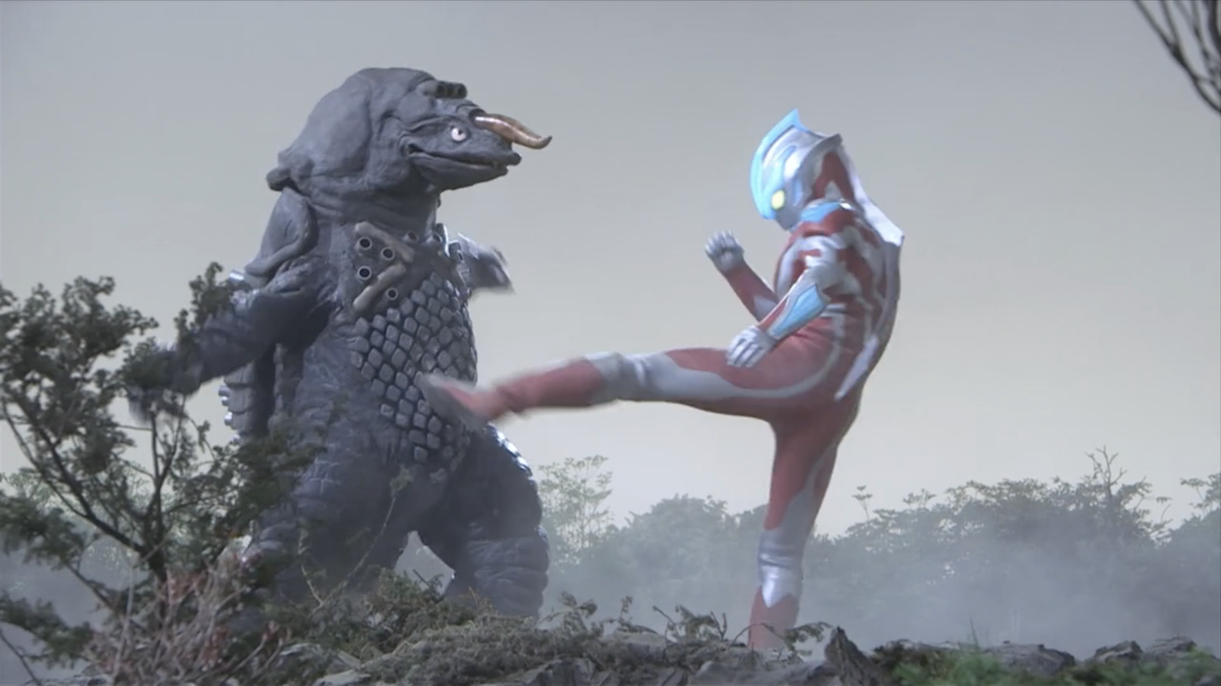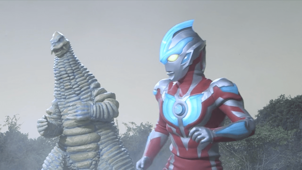 As kaiju fight action goes, what we get on screen isn’t too bad. The fight still takes place in that same stupid field under an empty beige sky, but I like both Zaragas and Red King as monsters, and Zaragas gets a nifty body-spike upgrade. I’m uncertain about Red King as a heroic kaiju — it’s the monster you love to hate — but putting Misuzu in control of Red King and then working with Ginga to double-team Zaragas makes it easier to accept. Misuzu finally getting the opportunity to control a Spark Doll is a welcome development, and she picked Red King, showing she has quality taste in kaiju.