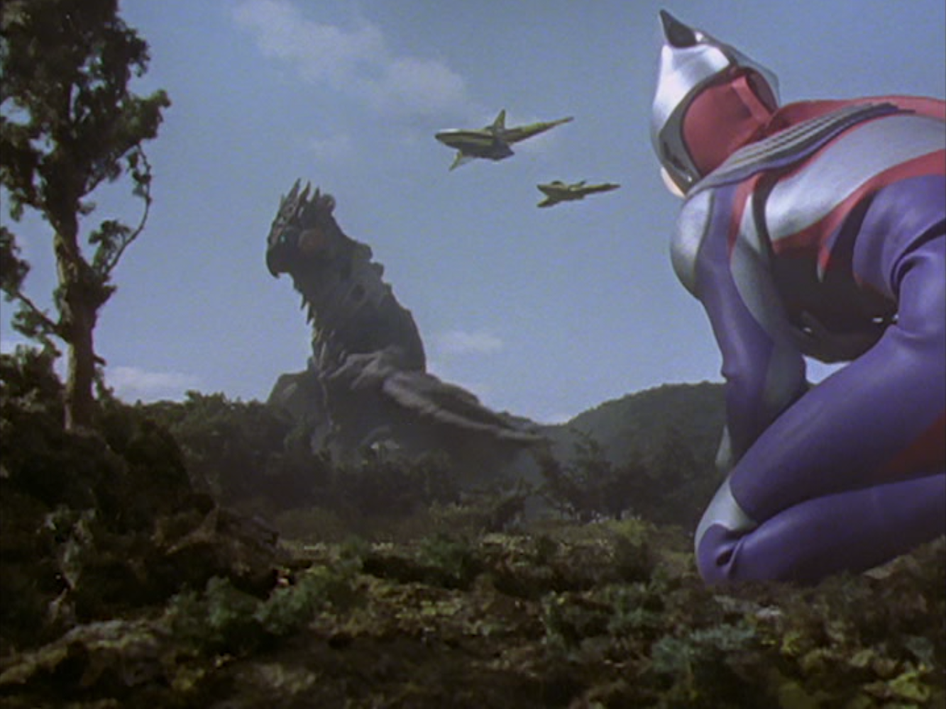 The effects scenes are plentiful as the GUTS Wings battle Shiela to prevent it from reaching Zelda Point. Tiga has a limited role, with only a small part during the finale at Zelda Point. Tiga can’t do much against Shiela because of an injury, but it wouldn’t be right for the alien hero to be the one to resolve the story anyway. The protagonist of the episode is Dr. Nezu, and the climax appropriately centers on him facing the monster that stands in for his deceased daughter and his guilt.