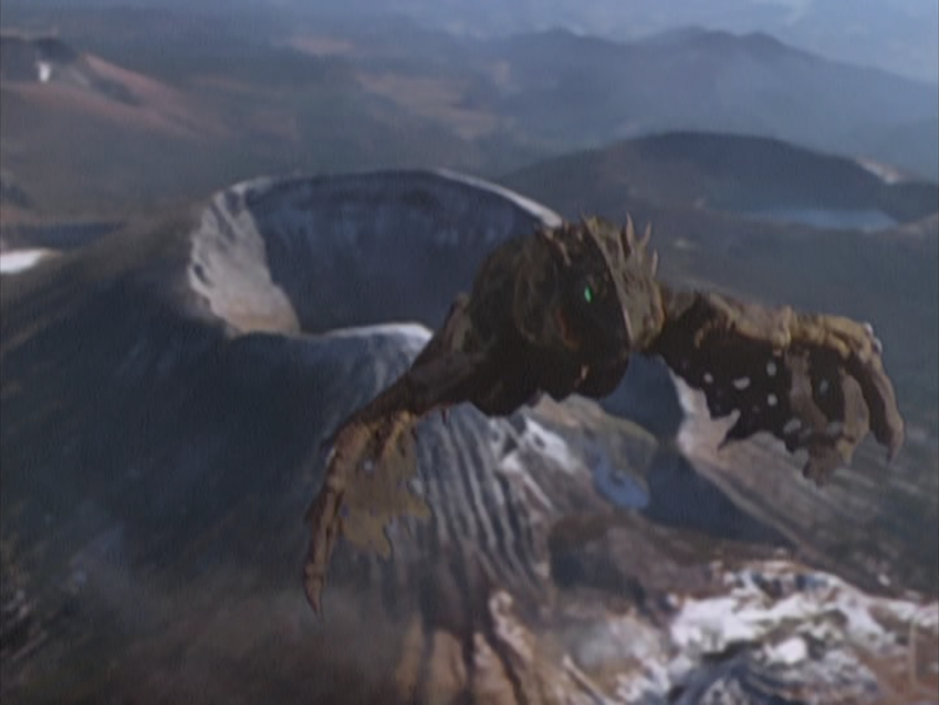 A kaiju resembling a rotting, dark parakeet rises from Mt. Rausu in Hokkaido and flies toward Zelda Point, a secure vault left over from the more militaristic organization that preceded the TPC. TPC head Sawai orders the GUTS Wings to do everything possible to prevent the bird creature from reaching Zelda Point because a highly volatile gas is stored there. If ignited, this “Zelda Gas” could wipe out a large portion of Japan.