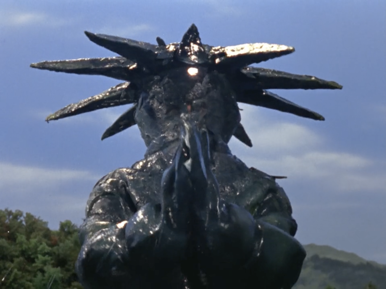 We don’t see much of Alien Tepeto, but they have a striking, simple design based on traditional images depicting kappa. The angular avian features are much different from what audiences might expect from aquatic creatures. Giant Tepeto is also interesting. It’s based on a fan design submitted to Tsuburaya Pro as part of a contest, and the starfish-like top of its head reminds me of an unholy mixture of an Elder Thing from H. P. Lovecraft’s At the Mountains of Madness and the Statue of Liberty.