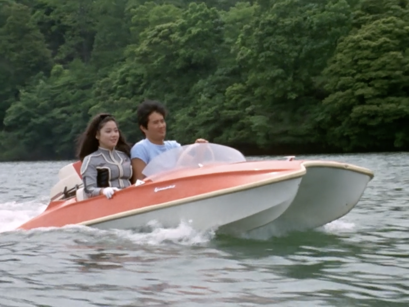 As “Challenge From Underwater” begins, it feels like it could be an episode of Ultra Q shot in color. We meet a team of amateur paranormal investigators who have come to Lake Ishu to follow rumors of sightings of water creatures called kappa. It’s hard not to see this “Japan Kappa Club” as an analog to the Ultra Q cast. Their leader, Sumitani (Masami Taura), is a science-fiction author like Jun; the one woman in the group, Fujishima (Kazuko Miyakawa), is a photographer like Yuriko. The difference is that these people treat probing into the unknown as a lark, nothing to be taken seriously. Sumitani even says they’d like to date kappa — a damn weird thing to admit.