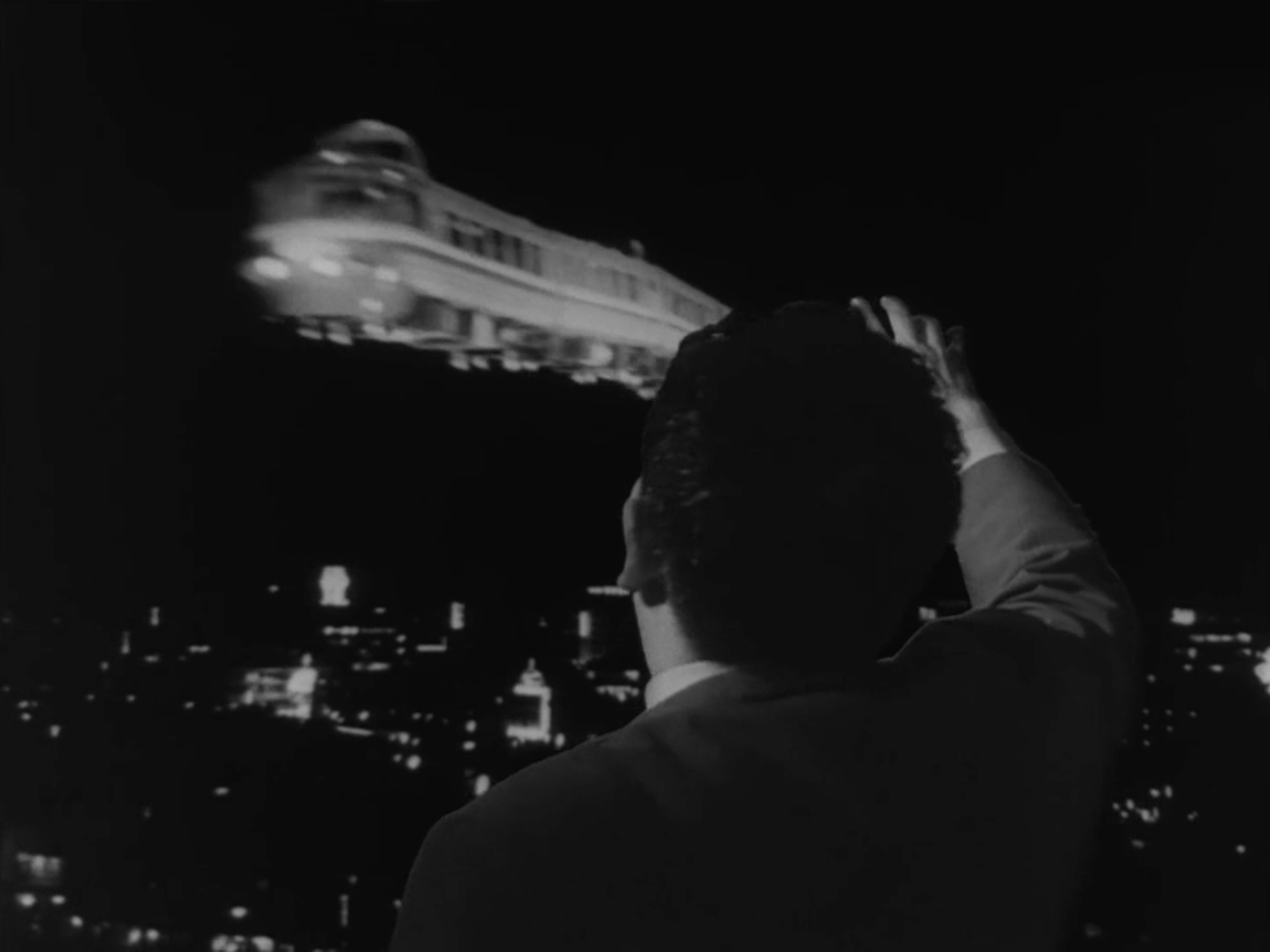 Jun and Ippei are returning from pilot training in Hong Kong aboard the maiden flight of a supersonic jet. The last time Ultra Q took a ride on the inaugural run of a super-speed vehicle, it was in “The Underground Super Express Goes West.” It was not a smooth trip. This second trip on emerging high-speed technology also goes wrong fast. Flight 206 gets dragged into a mysterious whirlpool in the sky and vanishes, leaving poor Yuriko and Professor Ichinotani at the airport baffled by yet another uncanny occurrence in the Unbalanced Zone.
